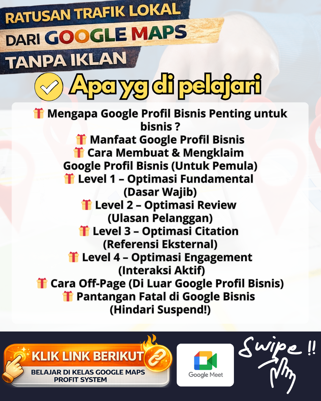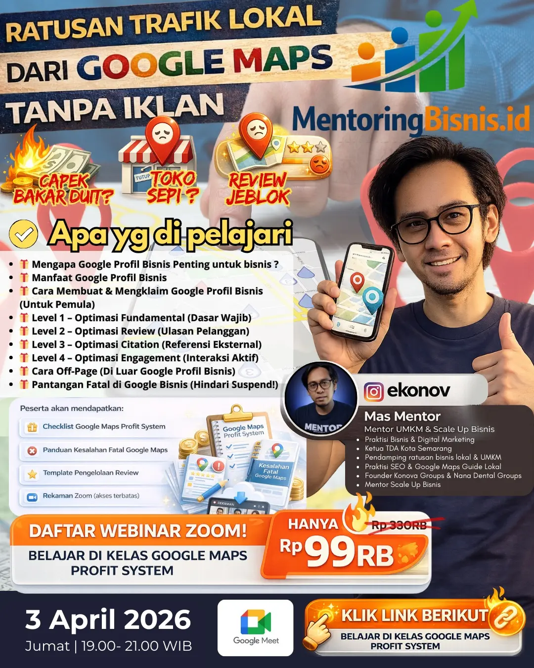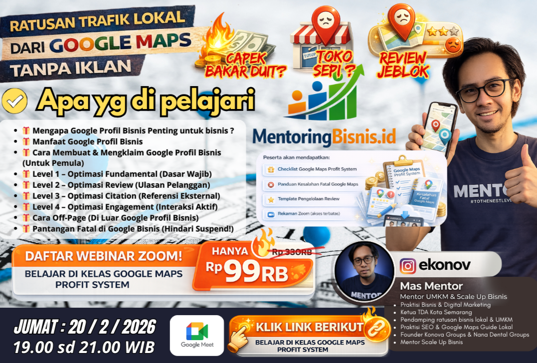 Jika kamu ingin memahami Google Maps dan strategi digital marketing secara menyeluruh dalam format yang lebih interaktif, saya rutin mengadakan: